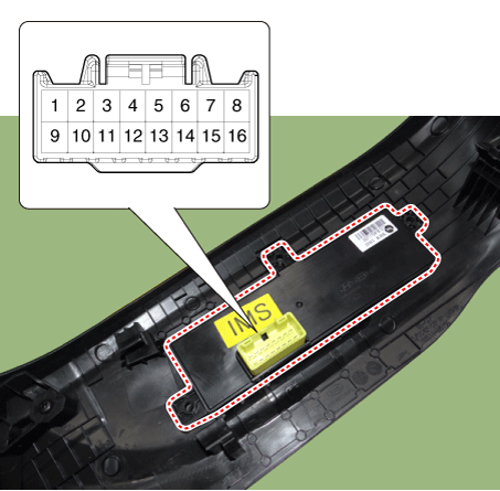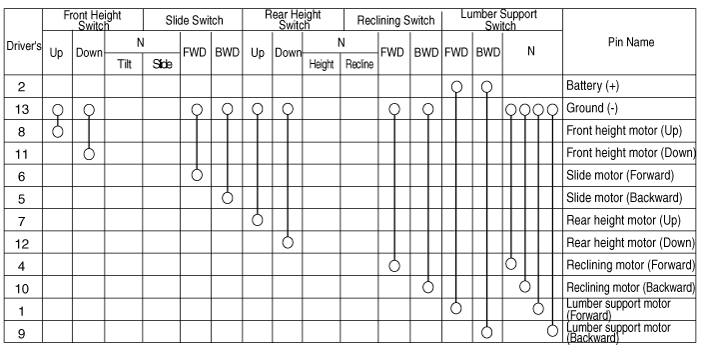 Когда питание аккумулятора подается на разъем переключателя управления сиденьем с электроприводом, проверить двигатель на плавность работы.
