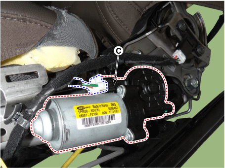 Отсоедините разъем двигателя после снятия сиденья. A : Двигатель передней высоты