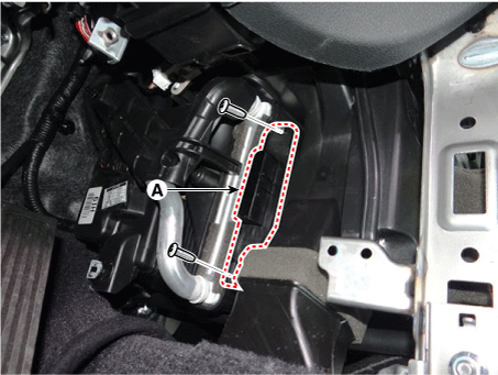 Снимите сердечник нагревателя PTC (A) после ослабления крепления нагревателя PTC. винты.