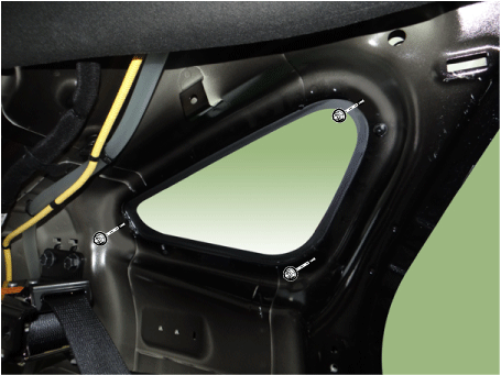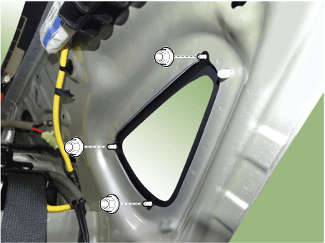 Снимите облицовку задней стойки. (См. Отделка салона — «Облицовка задней стойки») |