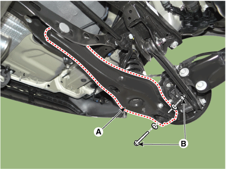 Отделите нижний рычаг (А), ослабив болты и гайки (В).