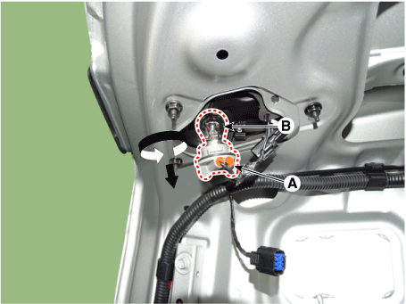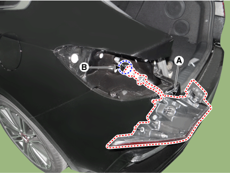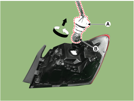 Снимите задний комбинированный фонарь (А), ослабив гайки после отсоединения разъем (В).