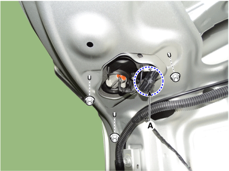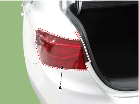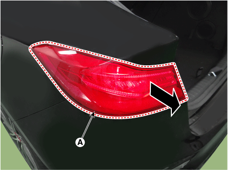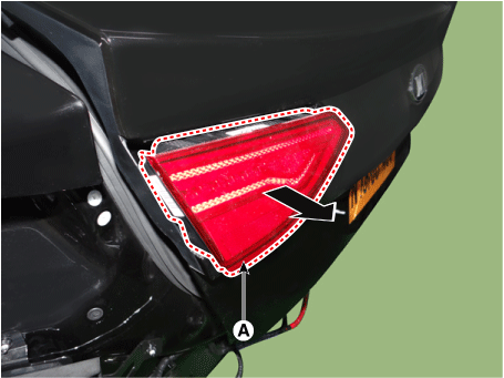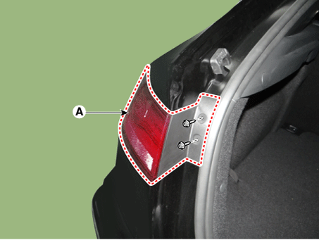 Снимите задний комбинированный фонарь (А) после ослабления винтов.
