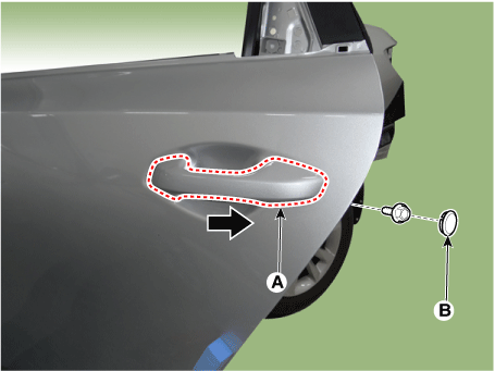 Ослабив болт крепления, снимите наружную ручку задней двери. (А).