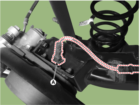 Отсоедините датчик скорости вращения колеса (А).
