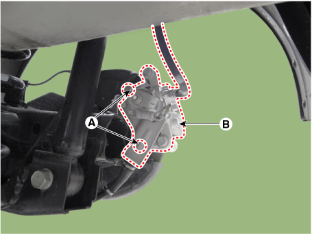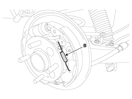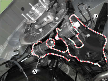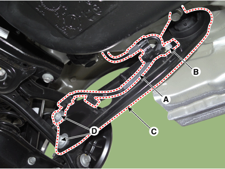 Отсоедините задний нижний рычаг (B) от заднего держателя.