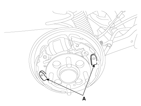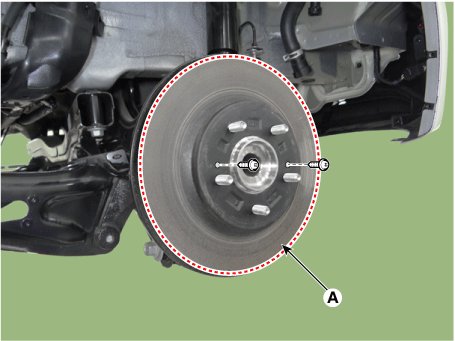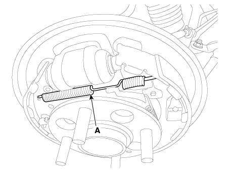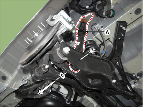 Снимите болты крепления тормозного суппорта (А) и удерживайте тормозной суппорт в сборе с проволокой.