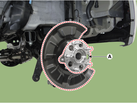 Снимите задний мост в сборе (А).