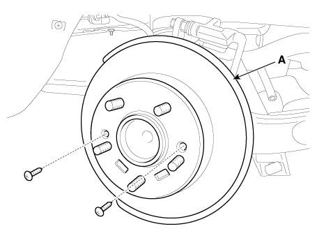 Снимите задний тормозной диск (А), ослабив винты.