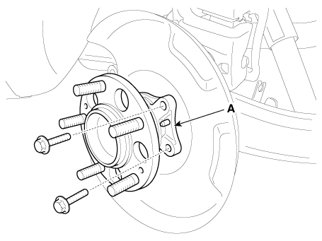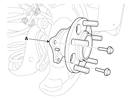 Снимите подшипник ступицы (А) с заднего держателя.