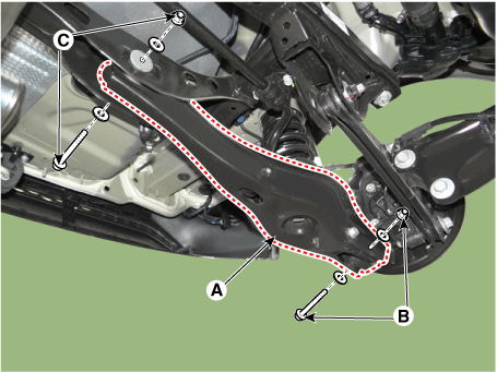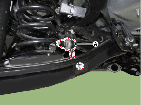 Снимите нижний рычаг (А), ослабив болты и гайки.