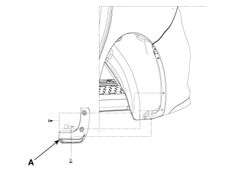 Ослабив крепежные зажимы и винты, снимите задний брызговик. (А).
