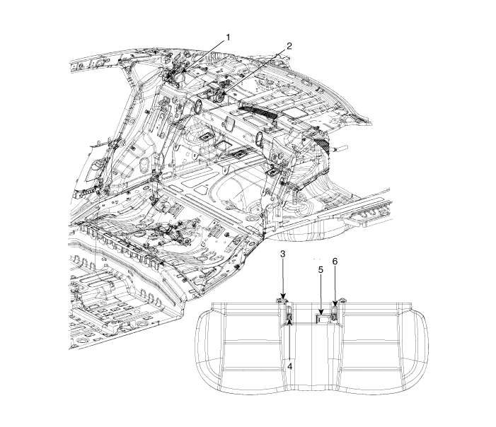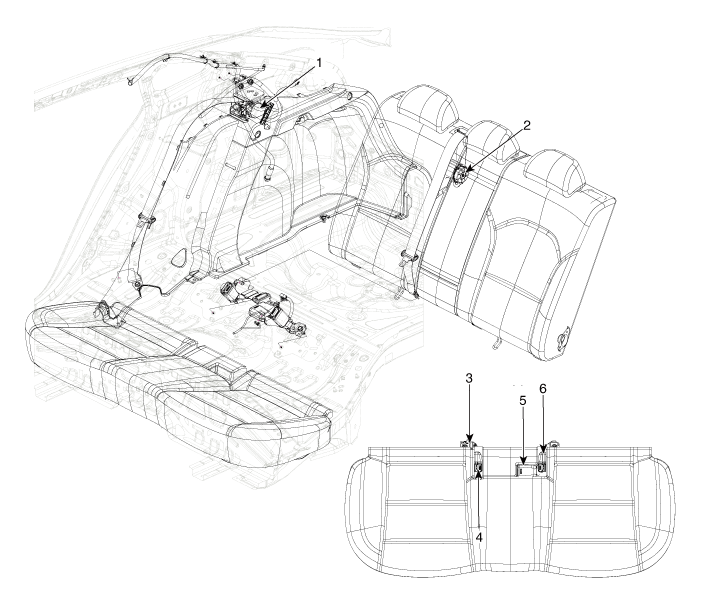 5. Пряжка заднего центрального ремня безопасности 6. Замок заднего ремня безопасности [левый] |