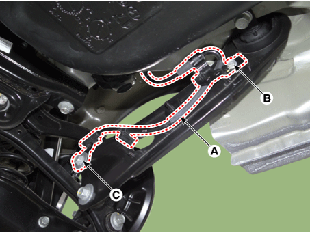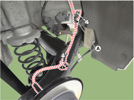 Отсоедините кронштейны удлинителя проводки датчика скорости заднего колеса (А). путем ослабления болтов.