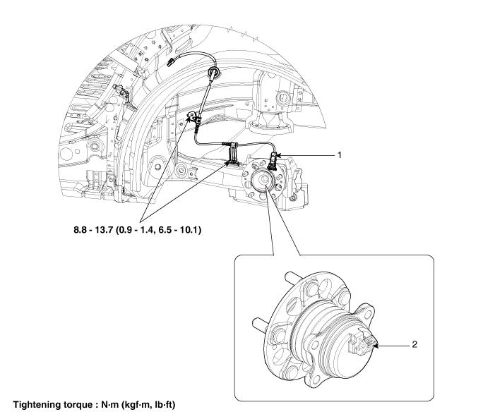 Измерьте выходное напряжение между выводом датчика скорости вращения колеса и заземление тела.