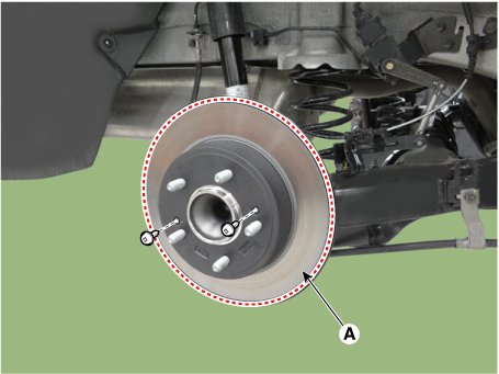 Снимите болты крепления тормозного суппорта (А) и удерживайте тормозной суппорт в сборе с проволокой.