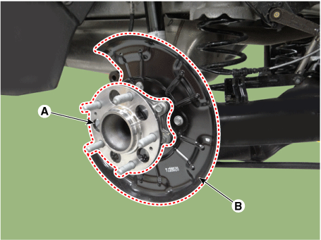 Снимите подшипник задней ступицы (А) и пыльник (В).