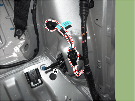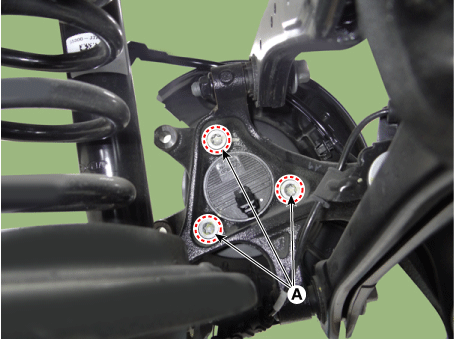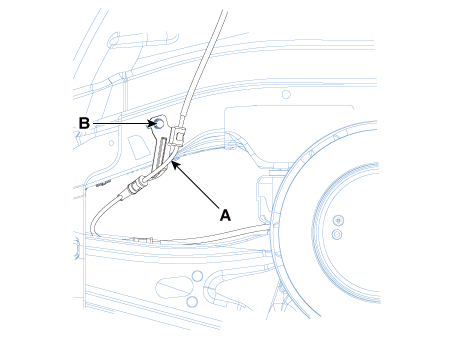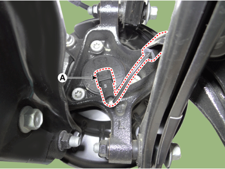 Отсоедините разъем (А) и снимите датчик скорости заднего колеса. удлинительная проводка.