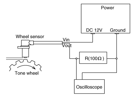 Сравните изменение выходного напряжения датчика скорости вращения колеса с нормальное изменение выходного напряжения, как показано ниже.
