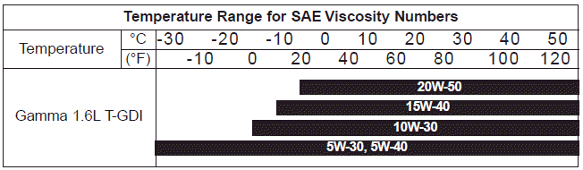 Вязкость (густота) моторного масла имеет влияние на экономию топлива и холод погодные условия эксплуатации (запуск двигателя и текучесть моторного масла). Низкая вязкость моторные масла могут обеспечить лучшее топливо экономичность и производительность в холодную погоду; однако более высокая вязкость моторные масла необходимы для удовлетворительного смазывание в жаркую погоду. С использованием масла любой вязкости, кроме рекомендуется может привести к повреждению двигателя повреждать. При выборе масла учитывайте Диапазон температур вашего автомобиль будет эксплуатироваться до следующая замена масла. Приступайте к выбору рекомендуемая вязкость масла от диаграмма.