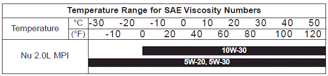 Для экономии топлива рекомендуется использовать моторное масло с вязкостью класс SAE 5W-30 (API Последний (ILSAC Latest) или ACEA A5/B5). Однако, если моторное масло не доступны в вашей стране, выберите подходящее моторное масло, используя таблицу вязкости моторного масла.
