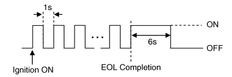 Когда зажигание включено в режиме вариантного кодирования (EOL), контрольная лампа подушки безопасности загорится и будет мигать с интервалом в 1 секунду, пока кодирование завершено. Если кодирование варианта выполнено правильно, предупреждение о подушке безопасности лампа включится на 6 секунд, а затем погаснет. В противном случае предупреждение подушки безопасности лампа будет непрерывно мигать с интервалом в 1 секунду.