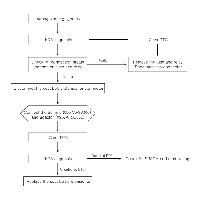 Осмотрите преднатяжитель сиденья, обратившись к поиску и устранению неисправностей. процедура. (См. Система ремней безопасности — «Устранение неисправностей») |