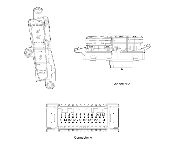 Отсоедините разъем выключателя отопителя (А). [Сторона водителя]