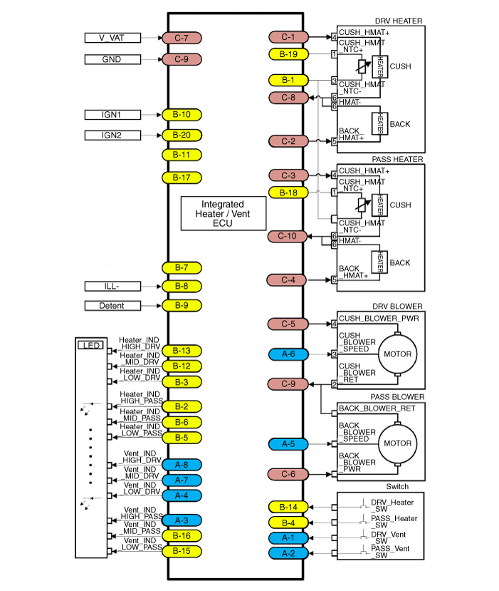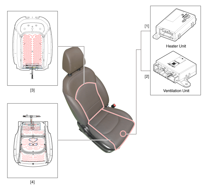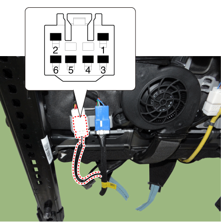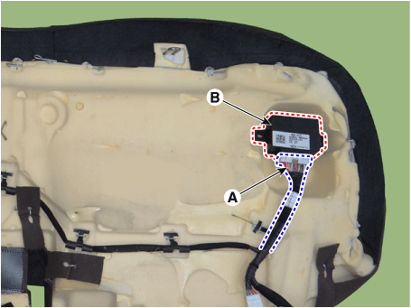 Снимите блок обогревателя заднего сиденья (В), предварительно отсоединив разъем. (А).