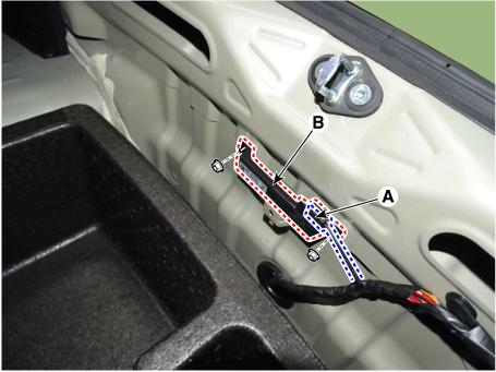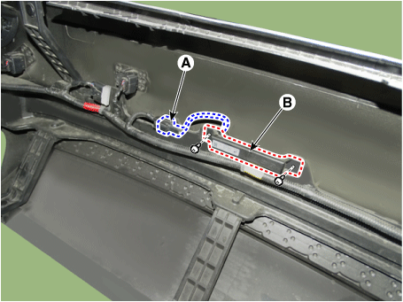 Снимите антенну заднего бампера (B), ослабив винты после отсоединения разъем (А).