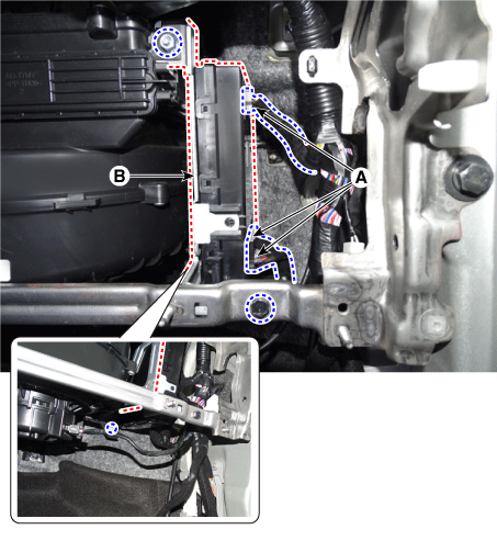 Подключите кабель KDS к разъему канала передачи данных в случае аварии со стороны водителя. нижняя панель накладки. |