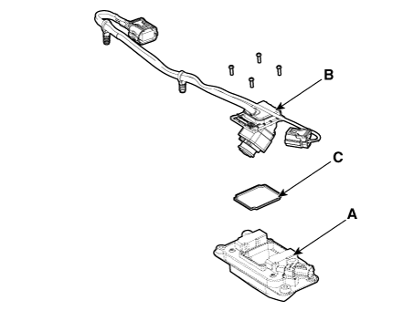 Снимите камеру заднего вида (B) и силиконовую прокладку (C), ослабив винты ручки крышки багажника (А).