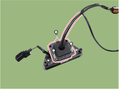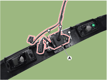Снимите камеру заднего вида и ручку крышки багажника в сборе (A) после ослабление крепежных винтов.