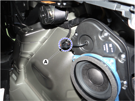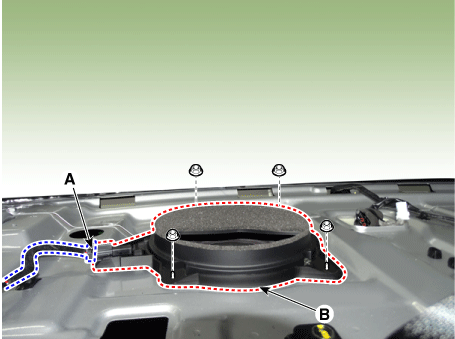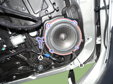 Отсоедините разъем (A), а затем снимите динамик передней двери (B), ослабление винтов.