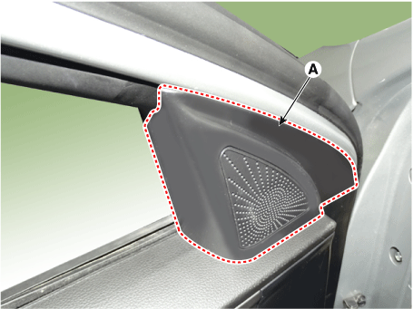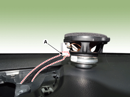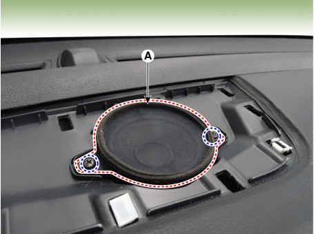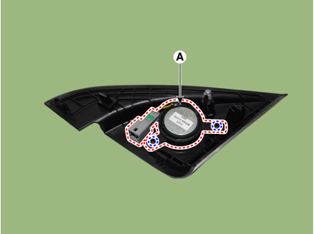 Снимите высокочастотный динамик (A) после ослабления винтов.