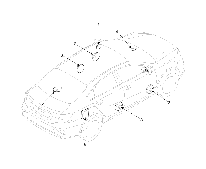 2. Динамик в передней двери 3. Динамик в задней двери |