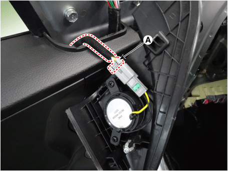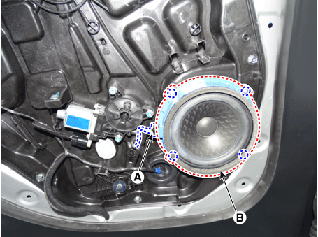 Отсоедините разъем (A), а затем снимите динамик передней двери (B), ослабление винтов.