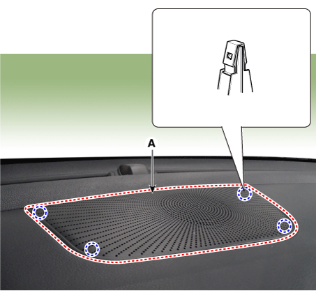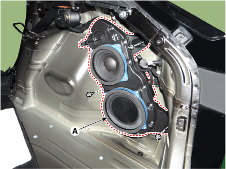 Снимите высокочастотный динамик (A) после ослабления винтов.
