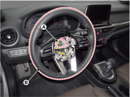 Ослабьте болт (А) и снимите рулевое колесо (В).