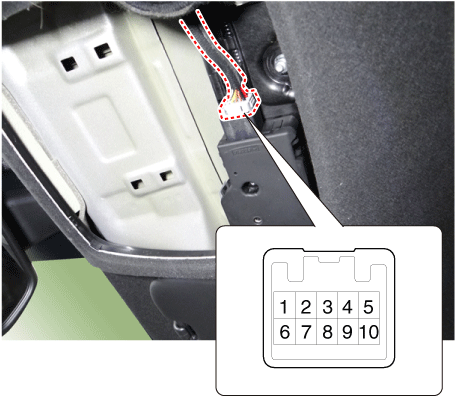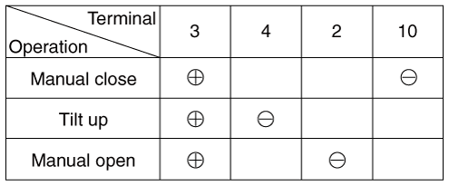 Заземлите клеммы, как показано в таблице ниже, и убедитесь, что блок люка работает после отсоединения разъема электродвигателя люка.