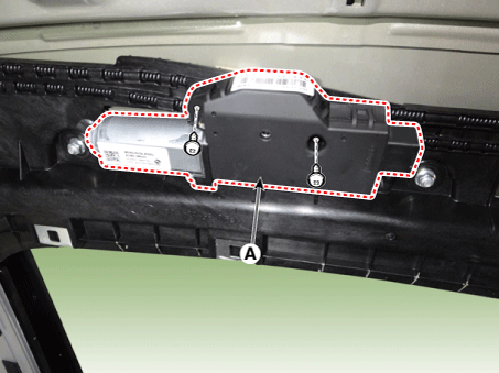 Снимите электродвигатель люка (А) после ослабления винтов.