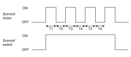 Для защиты электродвигателя люка от перегрева при длительном При работе ЭБУ люка в крыше управляет временем работы и временем охлаждения двигателя следующим образом: