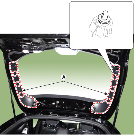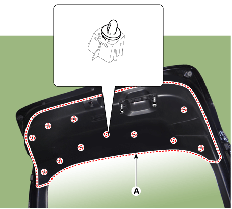 Ослабив крепежные винты и крепеж, снимите дверь багажника. нижняя отделка (А).
