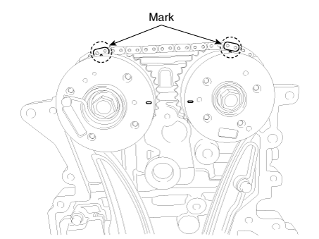 Совместите установочные метки звездочек CVVT с верхней поверхностью головку блока цилиндров, чтобы цилиндр № 1 располагался в ВМТ.