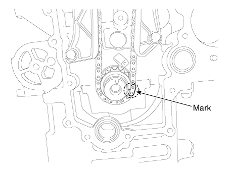 Снимите крышку цепи привода ГРМ. (См. Система синхронизации - «Крышка цепи привода ГРМ») |