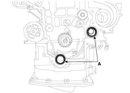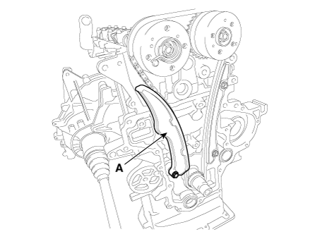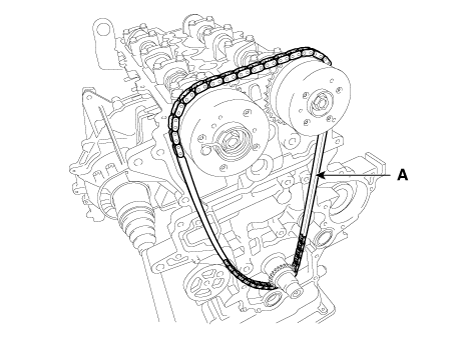 Снимите автоматический натяжитель цепи привода ГРМ (А).