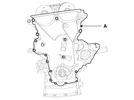 Снимите крышку цепи привода ГРМ (А).