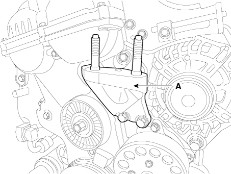 Снимите опорный кронштейн двигателя (А).