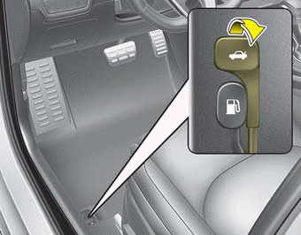 • Чтобы открыть багажник изнутри автомобиля, потяните фиксатор крышки багажника рычаг.