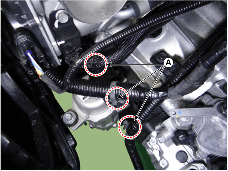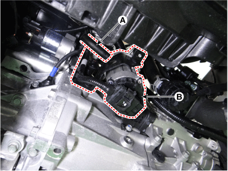 Отсоедините разъем электромагнитного клапана RCV (A) и давление наддува. разъем датчика (BPS) (B).